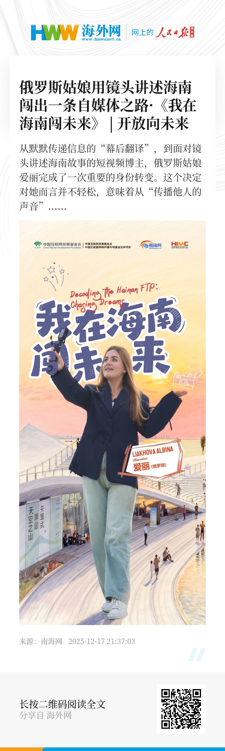 “如今,我已经成为岛上生活的积极参与者。”爱丽这样描述自己的变化。她所期待的未来,正如她自己所描绘的那样:与不断发展的海南并肩前行,同频成长。