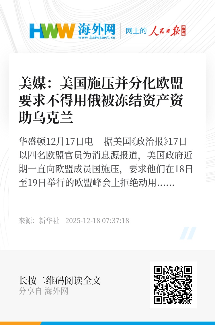 《政治报》指出,欧洲成员国之间就如何使用俄罗斯被冻结资产资助乌克兰存在严重分歧,暴露出整个欧洲大陆在如何应对新的世界秩序和美国前所未有施压上存在更深层次的分裂。