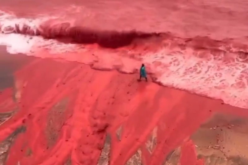 据悉,这种颜色来源于岛上富含氧化铁的土壤,这也是该岛的自然特征。该岛以此独特的地质而闻名。暴雨期间,土壤被冲入大海,将海水染成红色。