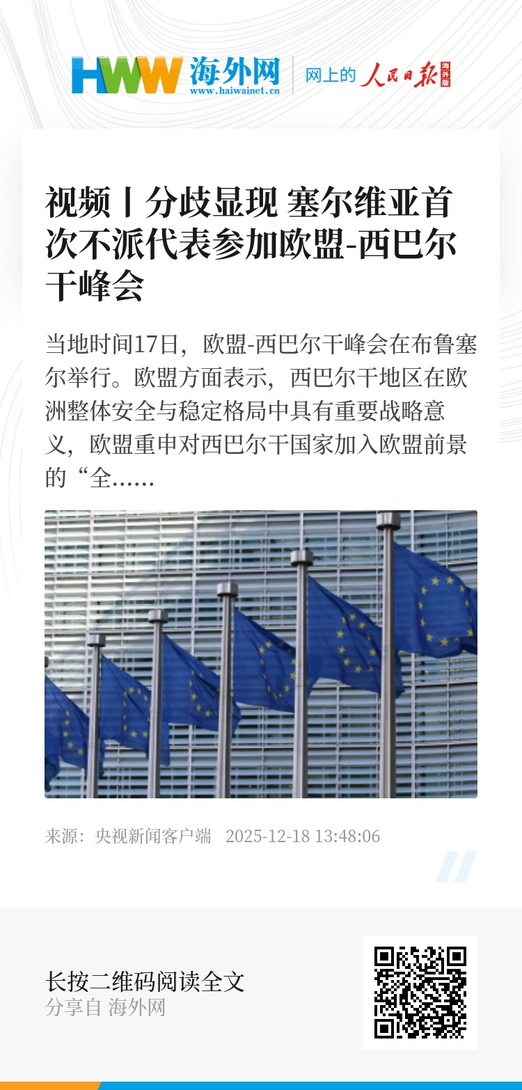 但此次峰会也显现分歧信号。塞尔维亚领导人及代表团未出席当天的会议,据了解,这是近十多年来塞尔维亚首次不派代表参加相关政府间会议。塞尔维亚方面表示,此举是保护塞尔维亚国家利益。有分析认为,在当前地缘政治压力、地区分歧以及个别国家立场变化的影响下,西巴尔干国家加入欧盟的进程面临更加复杂的挑战。
