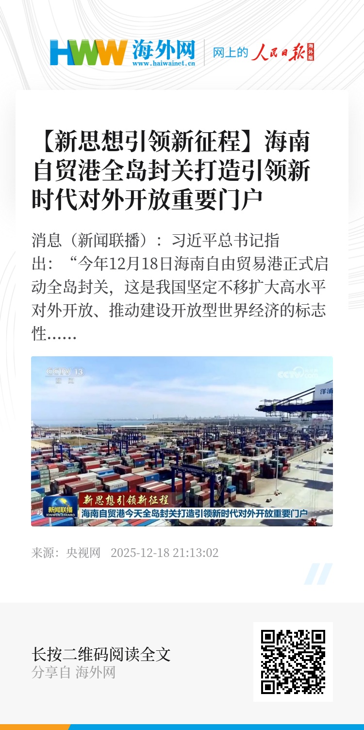 12月18日,随着10个“二线口岸”启用,海南自由贸易港正式启动全岛封关。