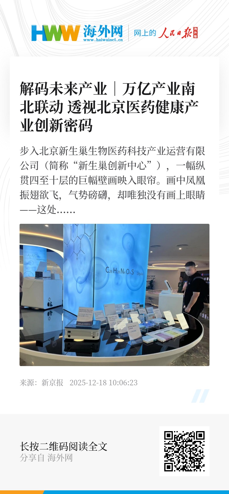 新生巢创新中心作为孵化端,已深度融入中关村生命科学园的产业生态。中关村生命科学园展厅工作人员张祎介绍,中关村生命科学园通过打造59个共享服务平台,构建了覆盖“孵化、研发、中试、转化”的全产业链支撑体系。