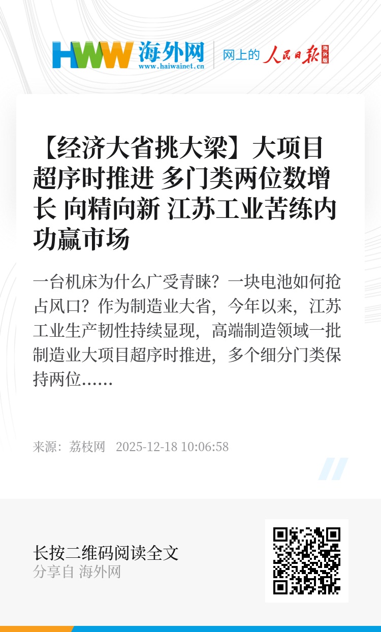 一台机床为什么广受青睐?一块电池如何抢占风口?作为制造业大省,今年以来,江苏工业生产韧性持续显现,高端制造领域一批制造业大项目超序时推进,多个细分门类保持两位数增长。让我们走访一些向精向新迈进的江苏企业,看他们如何苦练“内功”、赢得市场。