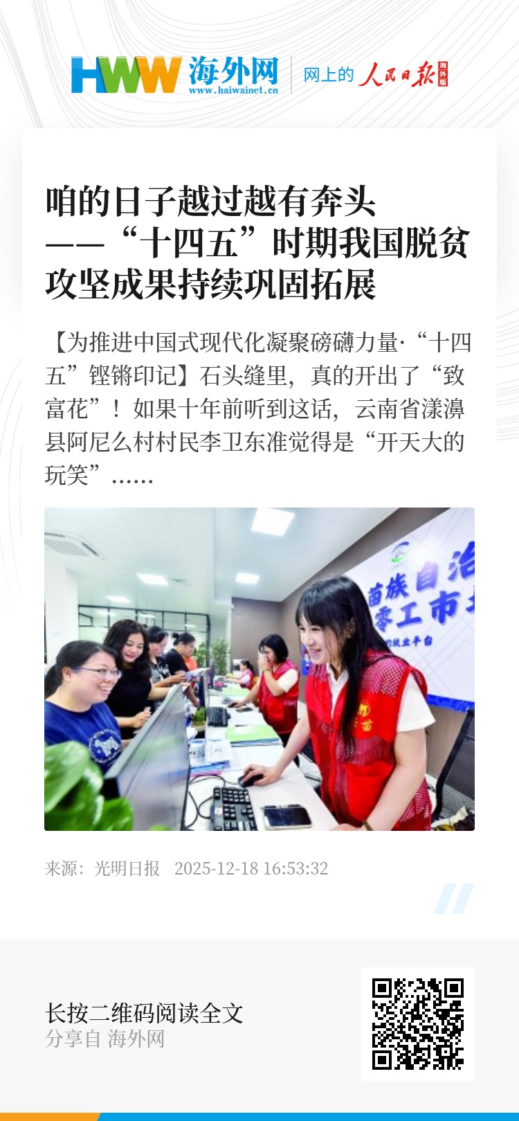 帮扶不松劲,政策不断档。“十四五”期间,中央财政安排衔接推进乡村振兴补助资金累计达8505亿元,脱贫地区基础设施和公共服务水平进一步提升;对国家乡村振兴重点帮扶县出台财政、金融、土地、人才等14方面倾斜支持政策,强化科技、医疗、教育等人才“组团式”帮扶。