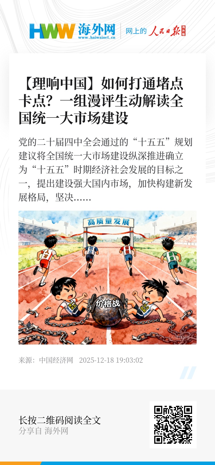 12月10日-12月17日,中国经济网推出系列漫评,精准聚焦 “整治企业低价无序竞争乱象”“整治政府采购招标乱象”“整治地方招商引资乱象”“推动内外贸一体化发展”“补齐法规制度短板”“纠治政绩观偏差” 六大关键领域,深入剖析全国统一大市场建设中的重点难点,探寻破局路径与实践方向。一系列生动解读,展现了破除发展障碍的坚定决心。一起来看。