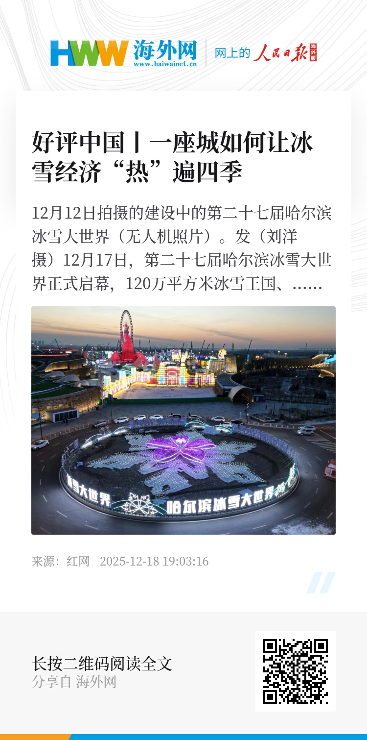 当前,冰雪经济正突破地域与季节局限加速拓展,“尔滨密码”为各地提供可复制的发展范本。未来,随着科技赋能的持续深化、产业协同的不断升级,“冷资源”必将释放更大“热效应”。这个冬天,不妨走进哈尔滨冰雪大世界,在冰天雪地里触摸中国经济的澎湃脉动,更深悟立足本土、深耕细作的发展真谛。