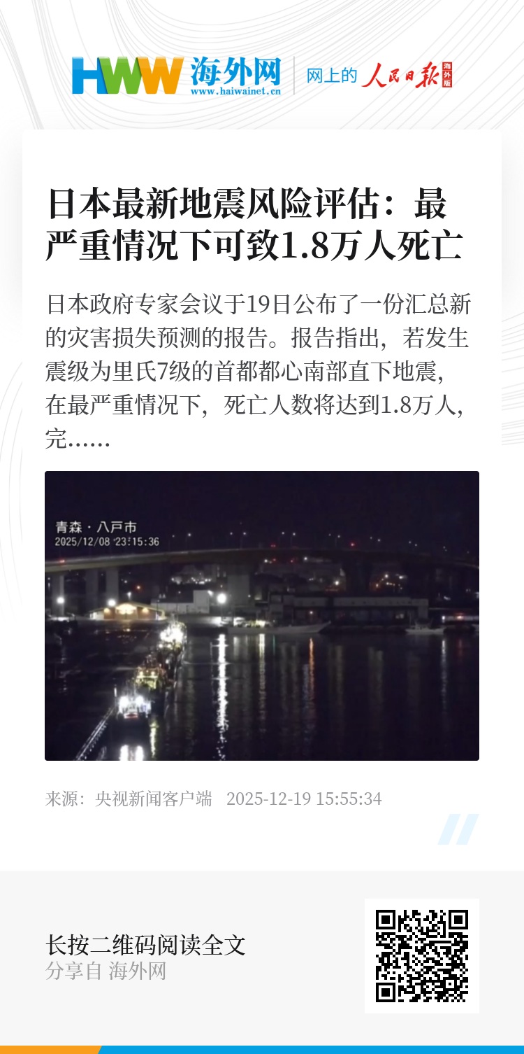 日本政府专家会议于19日公布了一份汇总新的灾害损失预测的报告。