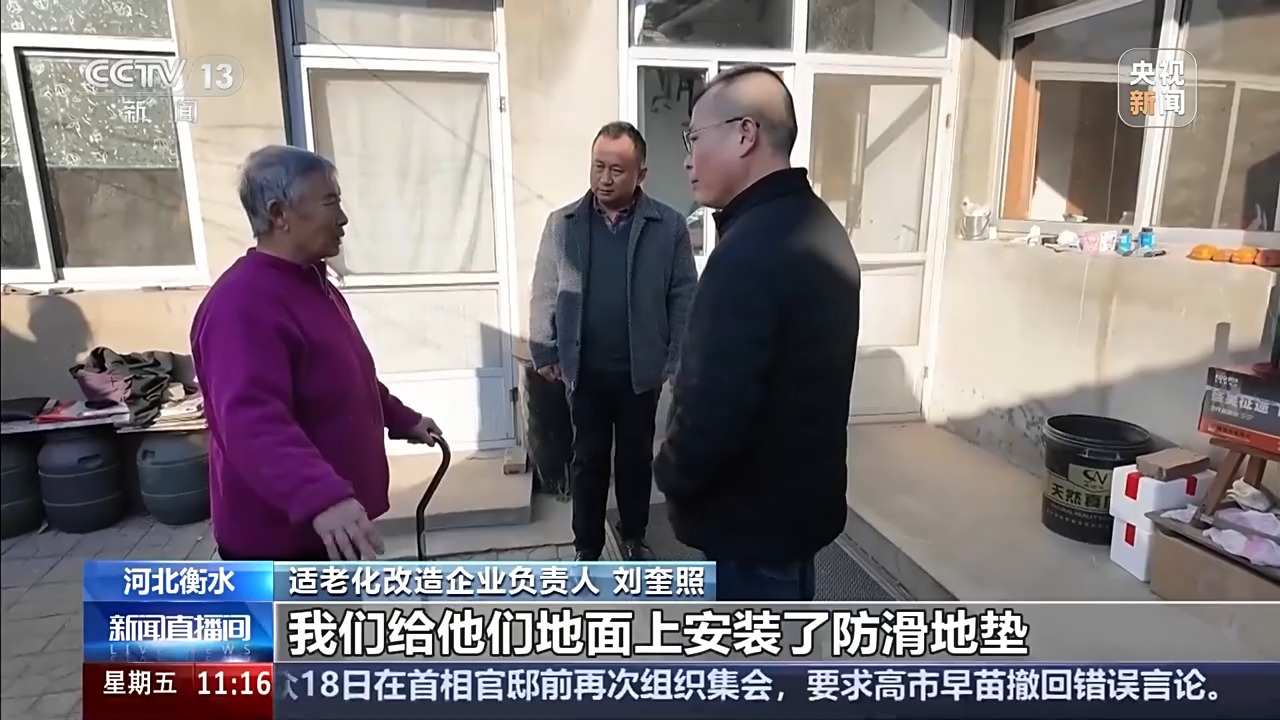 适老化改造企业负责人 刘奎照:我们根据需求调供给,好多老人住的都是平房,到了冬季结冰老人行走不方便。我们给地面上安装了防滑地垫。