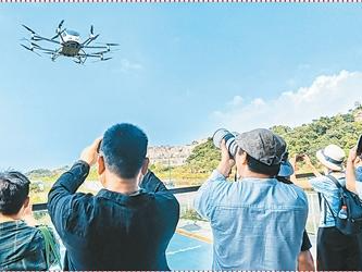 海外华文媒体代表在广东珠海桂山岛无人机运营中心参观采访。