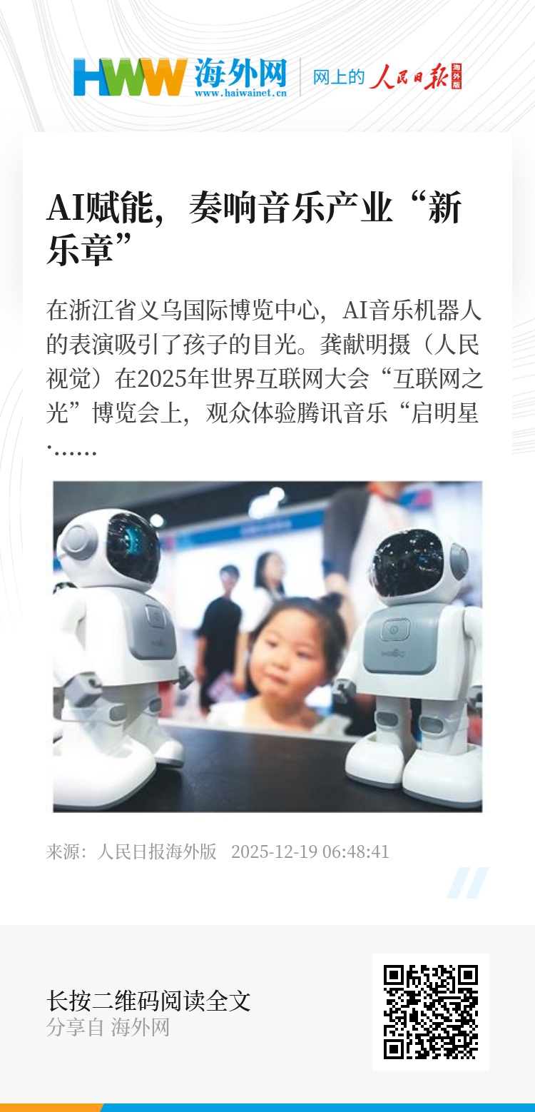 “目前,人工智能技术在音乐创作、制作、分发和消费等领域的广泛应用,不仅极大丰富了音乐的形式与内容,还为音乐产业带来了新的商业模式和增长点。”中央音乐学院教授黄宗权表示。