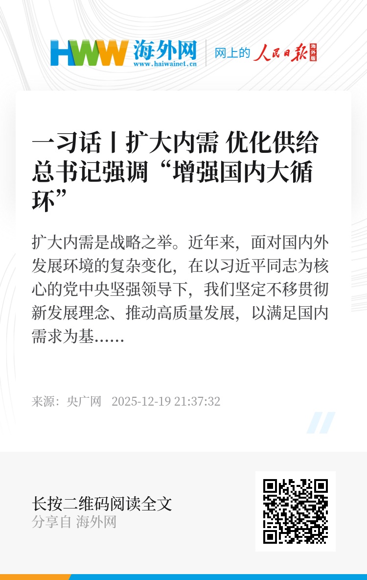 近日召开的中央经济工作会议把“坚持内需主导,建设强大国内市场”确定为明年经济工作八项重点任务之首位,强调要把“围绕做强国内大循环,拓展内需增长新空间”作为做好明年经济工作的关键着力点。
