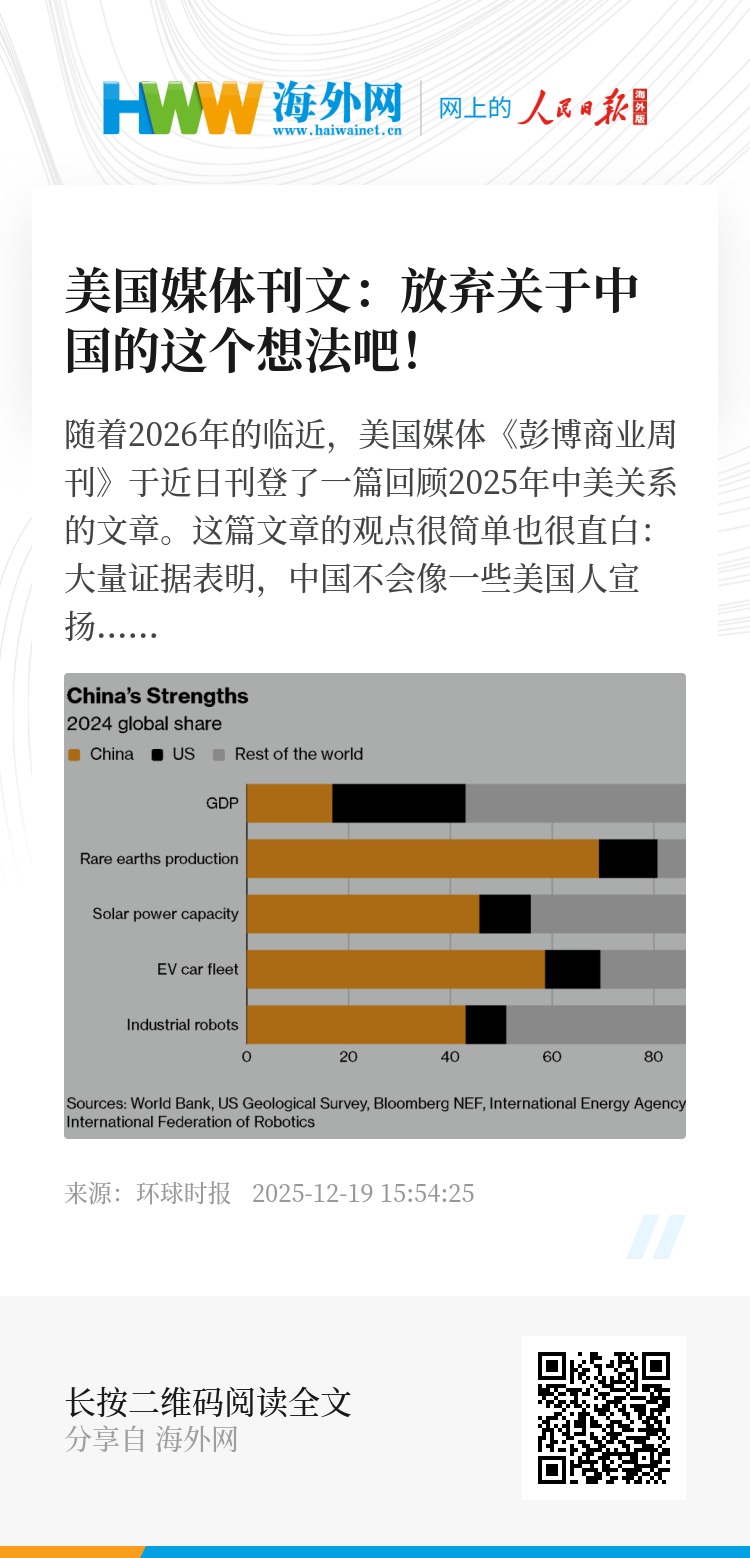 随着2026年的临近,美国媒体《彭博商业周刊》于近日刊登了一篇回顾2025年中美关系的文章。