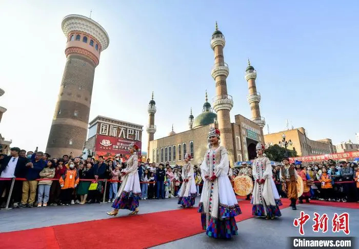 位于新疆乌鲁木齐市二道桥的新疆国际大巴扎举行开街仪式,吸引众多市民及游客围观。中新社记者 刘新 摄