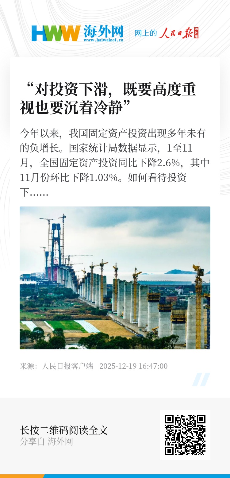 沉着冷静看投资,既要正视困难,又要坚定信心。坚持投资于物和投资于人紧密结合,优化投资结构、深挖投资潜力、政策持续发力,投资这个“快变量”有望加快显效,为扩内需、补短板、惠民生提供有力支撑。