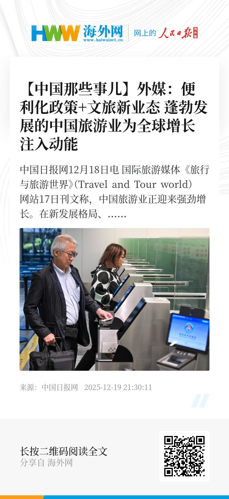 文章写道,随着中国持续推动创新与发展,其对全球旅游业的影响将日益增强。中国在全球旅游市场中竞争力的提升不仅将提振自身经济,也将为全球旅游行业的增长注入动力。