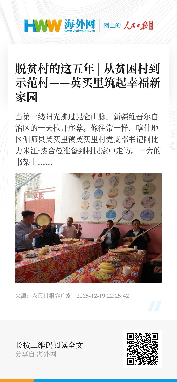 “要健全完善防止返贫监测和帮扶制度机制,接续推进全面脱贫与乡村振兴有机衔接,着重增强内生发展动力和发展活力,确保脱贫后能发展、可持续。要大力推动南疆经济社会发展和民生改善。”——2020年9月,习近平总书记在第三次中央新疆工作座谈会上的讲话