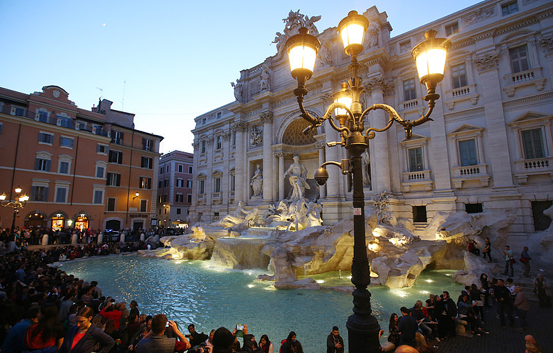 特雷维喷泉及“许愿池”落成于1762年,是经典电影《罗马假日》取景地,每年吸引成千上万游客。根据传统,游客往往在此许愿并向池中抛硬币。“许愿池”中每年捞出的硬币动辄逾百万欧元,均捐给慈善机构。