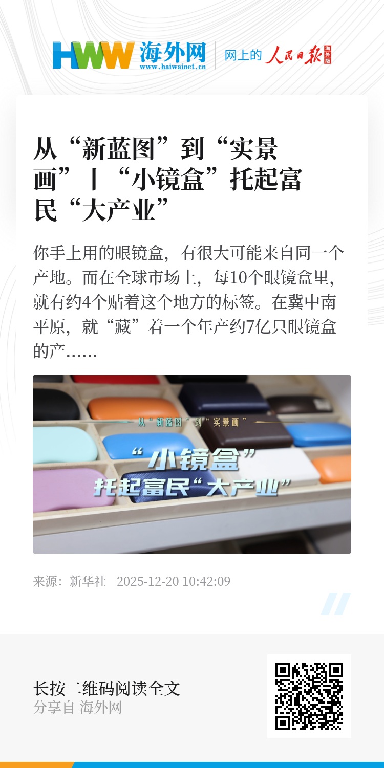 你手上用的眼镜盒,有很大可能来自同一个产地。而在全球市场上,每10个眼镜盒里,就有约4个贴着这个地方的标签。在冀中南平原,就“藏”着一个年产约7亿只眼镜盒的产业高地——河北新河。