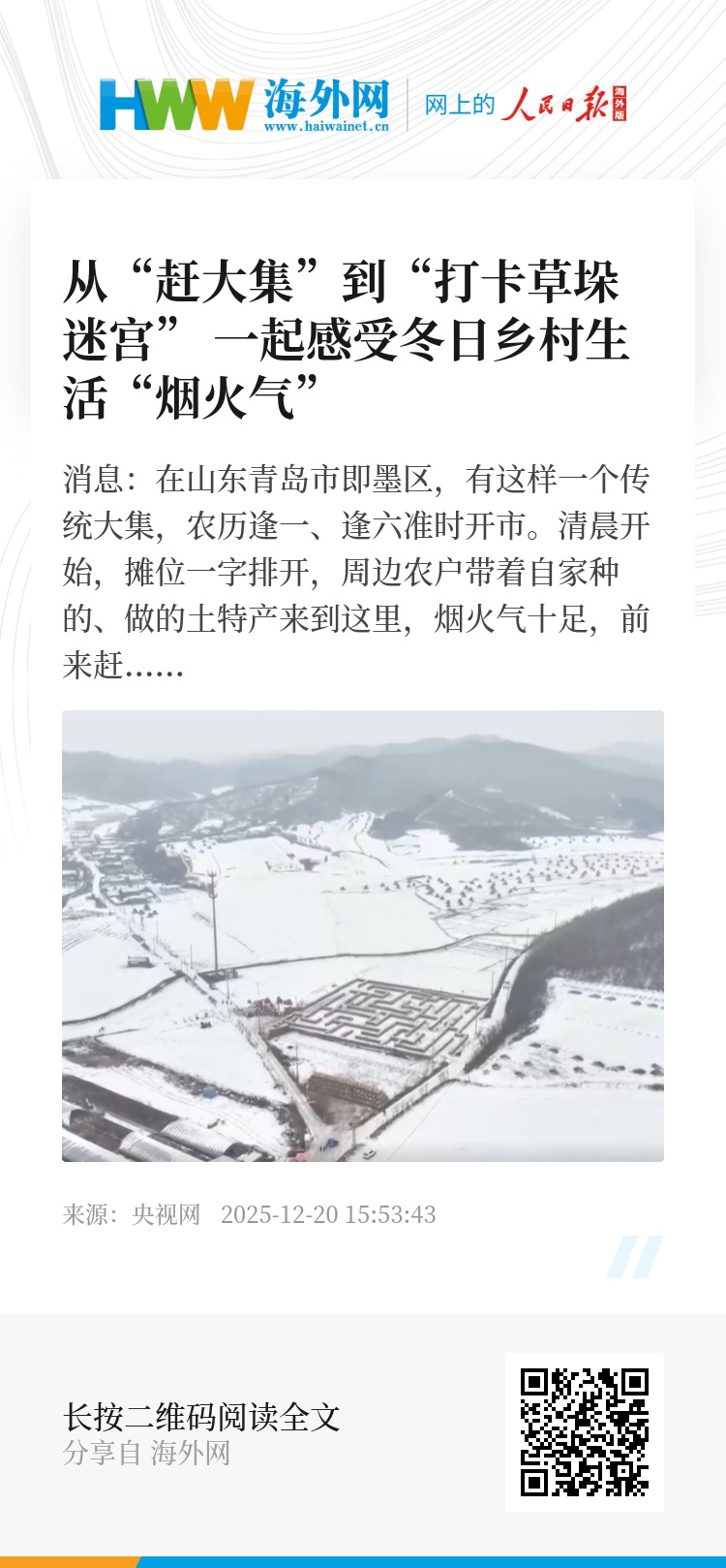 感受过了大集的热闹劲儿,我们再去东北乡村看看。在辽宁沈阳魏家沟村,往年这个时候已经到了冬季农闲时节。但现在,一些村民利用秋收后的秸秆打造出别具一格的“草滚子迷宫”,让原本寂静的村庄在这个冬天又焕发出滚烫人气。