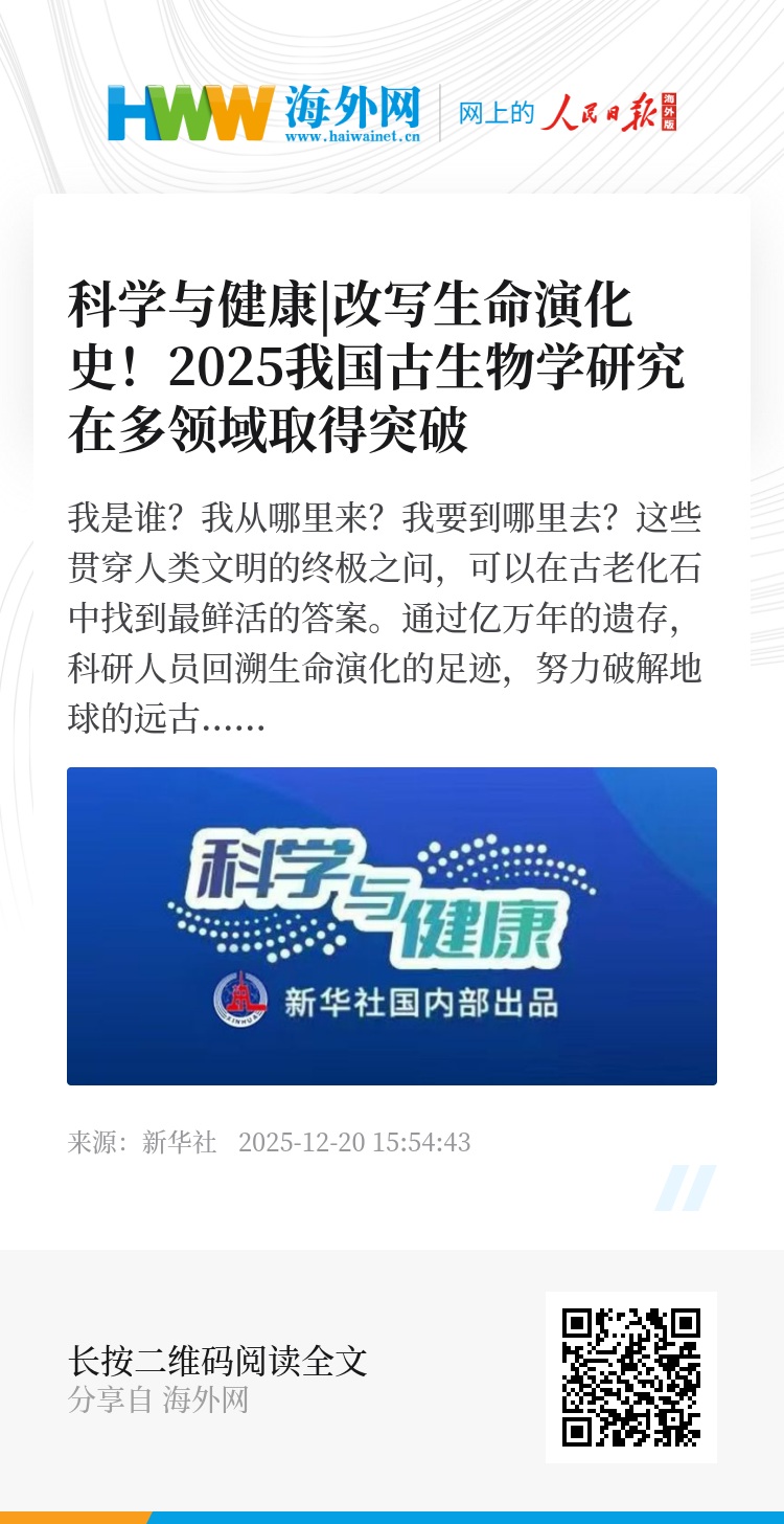 跨越时光长河,中国古生物学的突破成为连接过去与未来的桥梁,不仅改写了生命演化的教科书,更让我们读懂当下生命世界的由来,为解答“人类从何而来”的哲学追问,提供越来越多的科学答案。