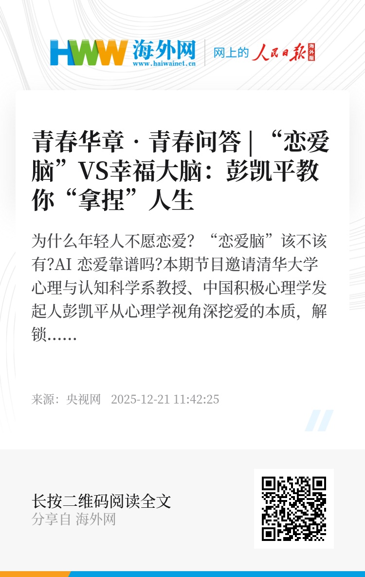青春华章•青春问答 | “恋爱脑”VS幸福大脑:彭凯平教你“拿捏”人生