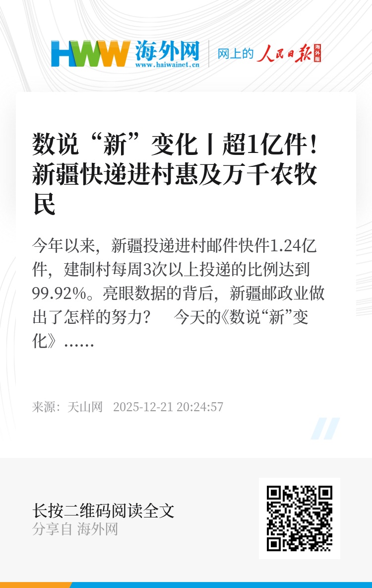 数说“新”变化丨超1亿件!新疆快递进村惠及万千农牧民