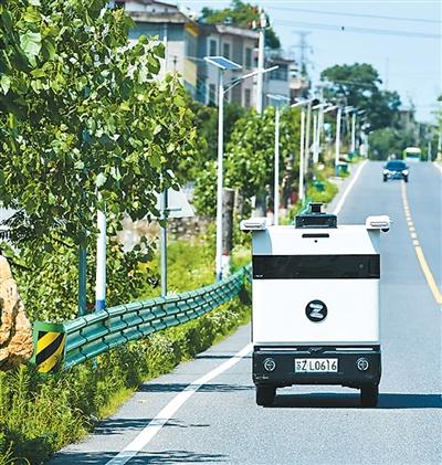 江西省宜春市袁州区竹亭镇,无人驾驶快递车行驶在乡间道路上。周亮摄(人民视觉)