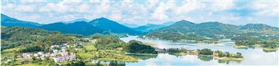 湖北省黄冈市团风县牛车河水库,蓝天白云下的水库碧波荡漾,绘就一幅乡村生态画卷。王江摄(人民视觉)
