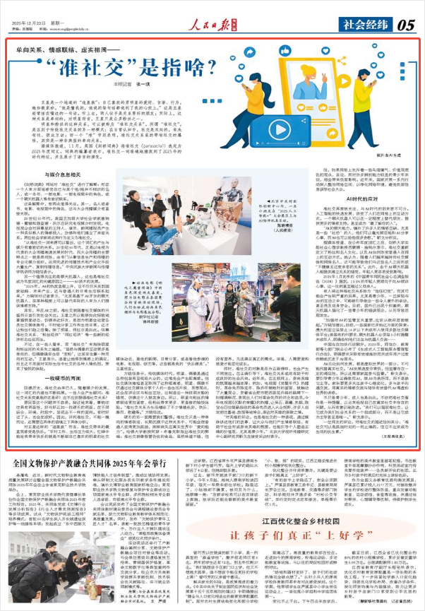 “2025年,AI的热度急剧上升,它不仅仅关系到国家战略、未来产业,还与普通人的日常生活联系起来。”方晓恬对记者表示,“尤其是基于AI开发的聊天机器人,在某种程度上可以替代实际的人来为人们提供情感支持。”