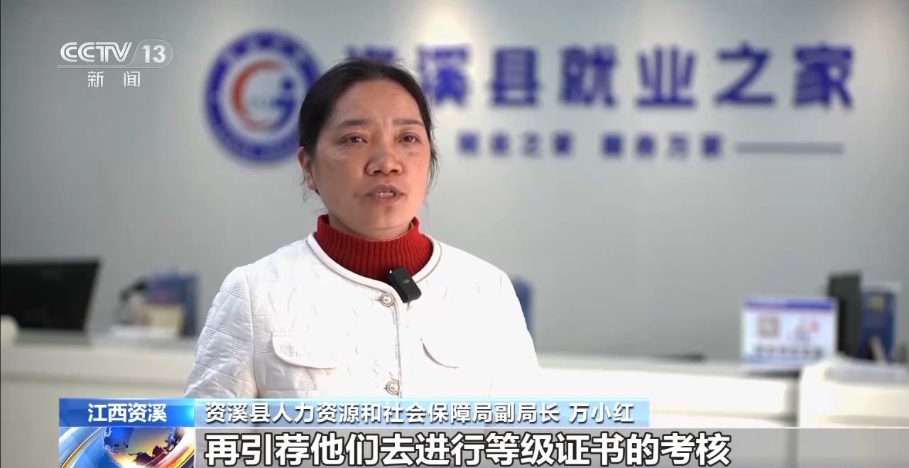 资溪县人力资源和社会保障局副局长 万小红:培训合格以后再引荐他们进行等级证书的考核,加上我们的就业推荐信,他可以到我们开的任何资溪面包品牌店里面去就业,可以免试上岗。