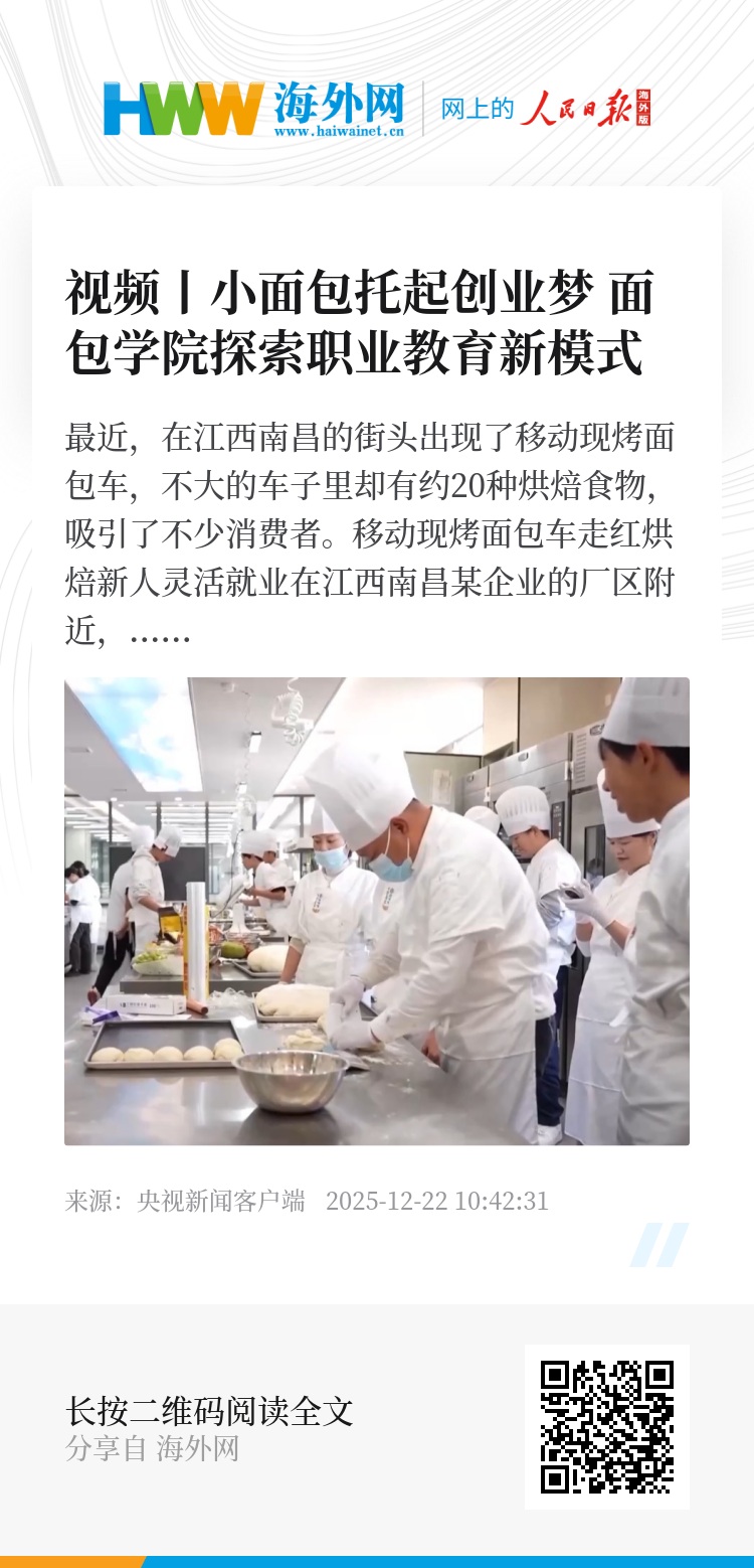 据统计,资溪县常住人口不足10万人,30多年来已经走出了4万多名面包师,他们在全国开设门店达1.6万家。今年1月,当地依托职业院校,引入社会资源,成立了专门的“面包学院”。这座学院是如何打造出职业教育新模式的?