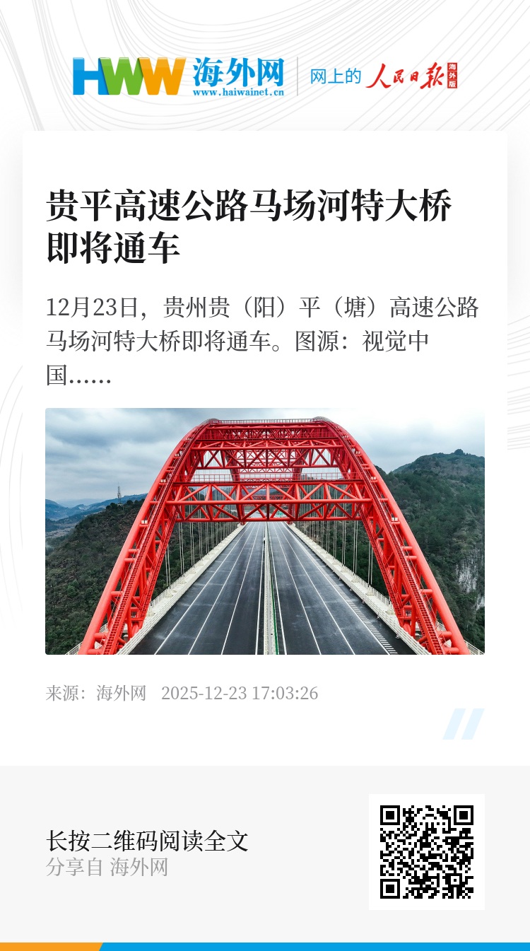 32918379,.贵平高速公路马场河特大桥即将通车,.2025-12-23 17:03:26,.204309,.陈亚楠、侯兴川