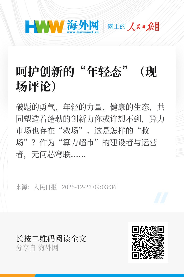 呼唤年轻人的创新力,需要营建友好的创新生态。设立两年的“模速空间”,好比一个新型的创新联合体。这里没有学科壁垒,没有层级约束,而是有跨界协作的活力迸发、创新要素的自由流动。由此形成的创新生态呈现出“年轻态”:“算力超市”可整合长三角乃至中西部优质算力资源,让企业以接近一半的成本获得所需算力,“下楼就能买到算力”;金融创新中心用AI为企业精准“画像”,破解“投入大、周期长、轻资产”的科创企业融资难……正因有了支持创新、鼓励创造的沃土,青年智慧被更好激发出来,为创新发展注入不竭动力。