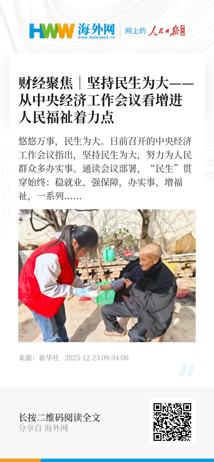 一项项举措背后,是以高质量发展持续增进民生福祉的价值导向。随着中央经济工作会议各项部署落地见效,更多看得见、摸得着的变化,将持续转化为人民群众实实在在的获得感、幸福感和安全感。(新华社记者)