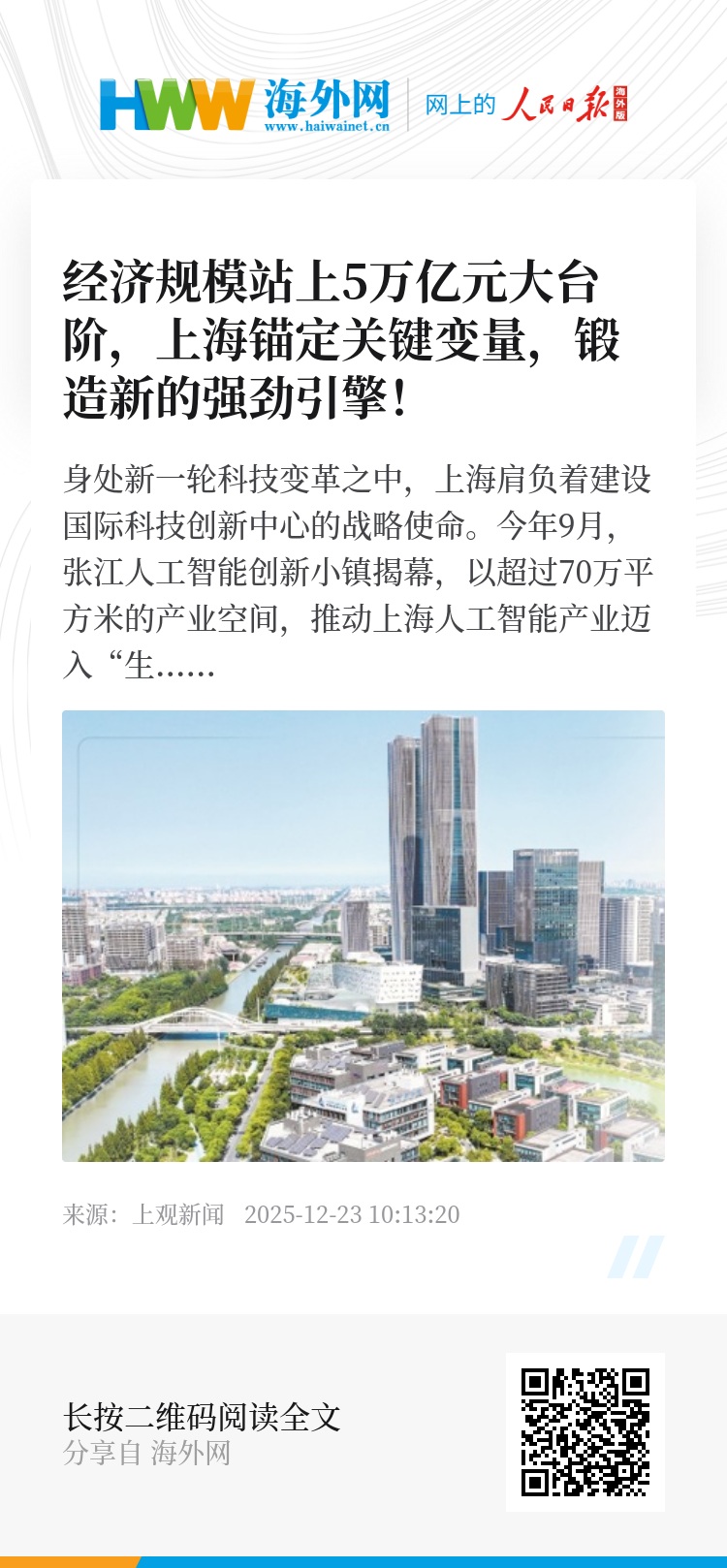 新质生产力正成为上海高质量发展的核心驱动力。今年前三季度,上海三大先导产业增长8.5%,其中人工智能、集成电路、生物医药产业分别增长12.8%、11.3%、3.6%,三大先导制造业产值占全市工业比重达12.3%,较2024年提高0.6个百分点。