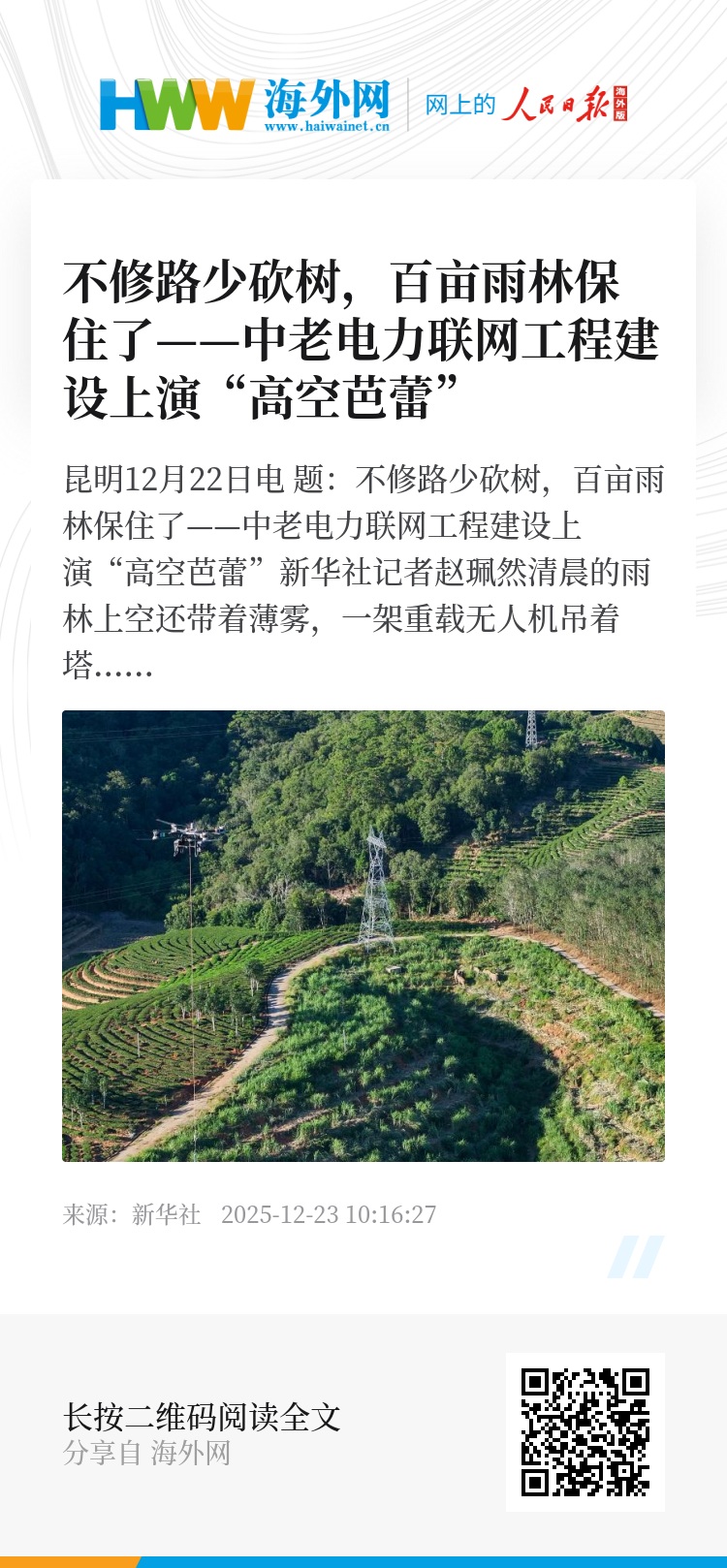 新华社昆明12月22日电 题:不修路少砍树,百亩雨林保住了——中老电力联网工程建设上演“高空芭蕾”