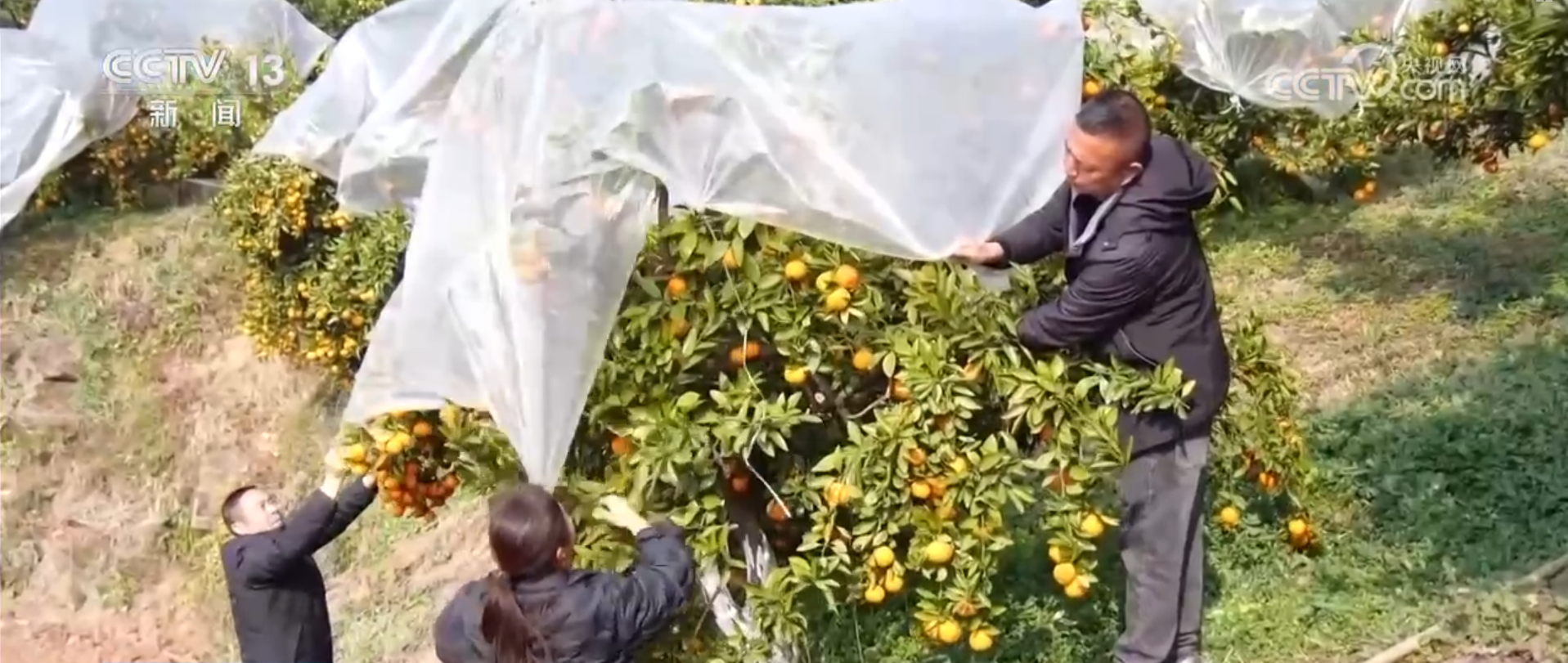 在襄阳南漳县巡检镇百福头村,当地橘农正忙着给橘树盖上保温膜,就像给橘树盖上了“棉被”,护住了枝叶和柑橘,鲜果采摘期可延长到元旦前后。