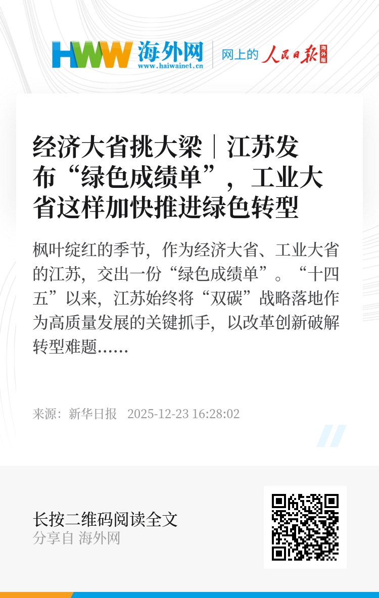 从能耗双控到绿色制造升级,从固废利用到生态保护履职,江苏正以系统性举措推动工业绿色转型提质增效,为工业大省践行“双碳”战略提供坚实范例。