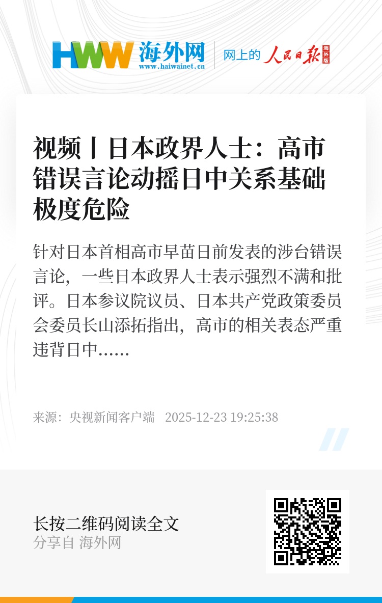 针对日本首相高市早苗日前发表的涉台错误言论,一些日本政界人士表示强烈不满和批评。
