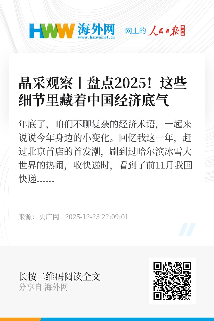 其实,这一年的经济温度就藏在这些日常里。正如中央经济工作会议在部署明年经济工作时明确指出的,要“在质的有效提升上取得更大突破”,这为“十五五”开好局、起好步提供了重要指引。那些藏在柴米油盐里的确定性,正是支撑中国经济向上向好的坚实底气。