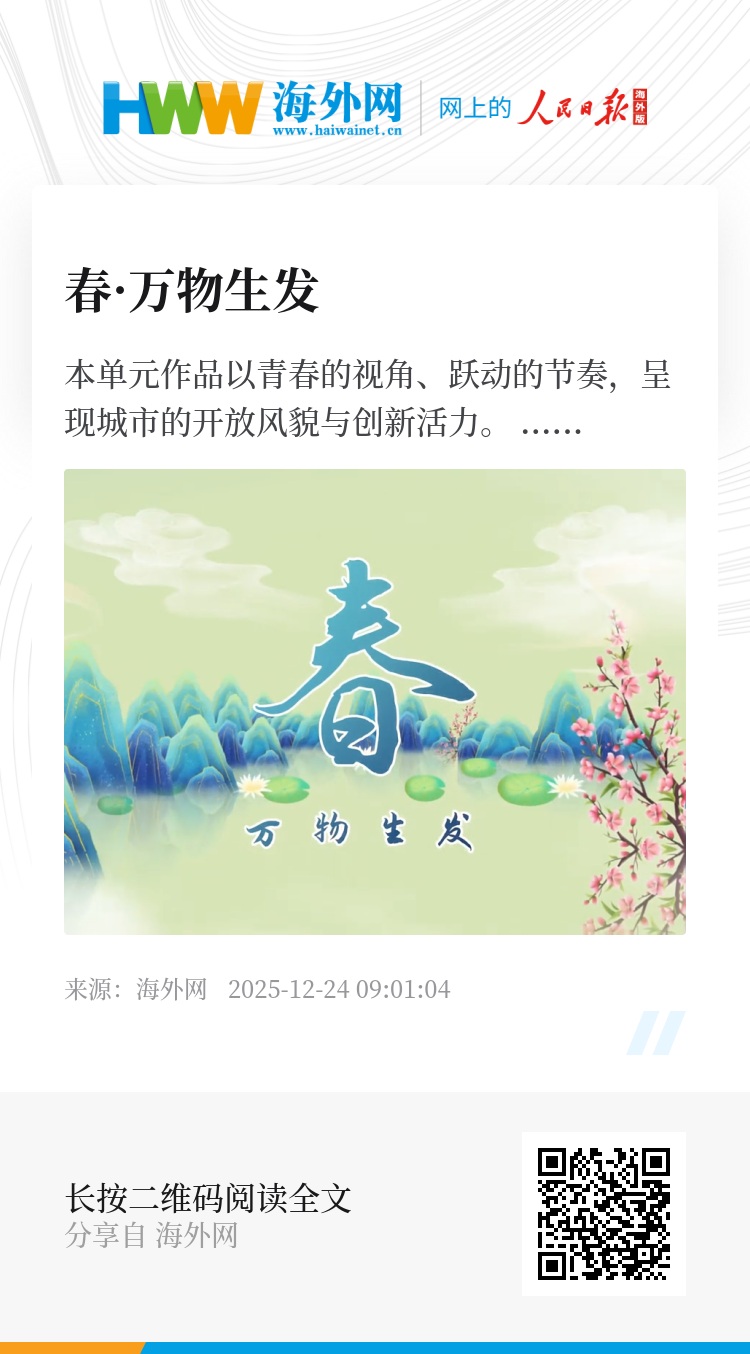本单元作品以青春的视角、跃动的节奏,呈现城市的开放风貌与创新活力。