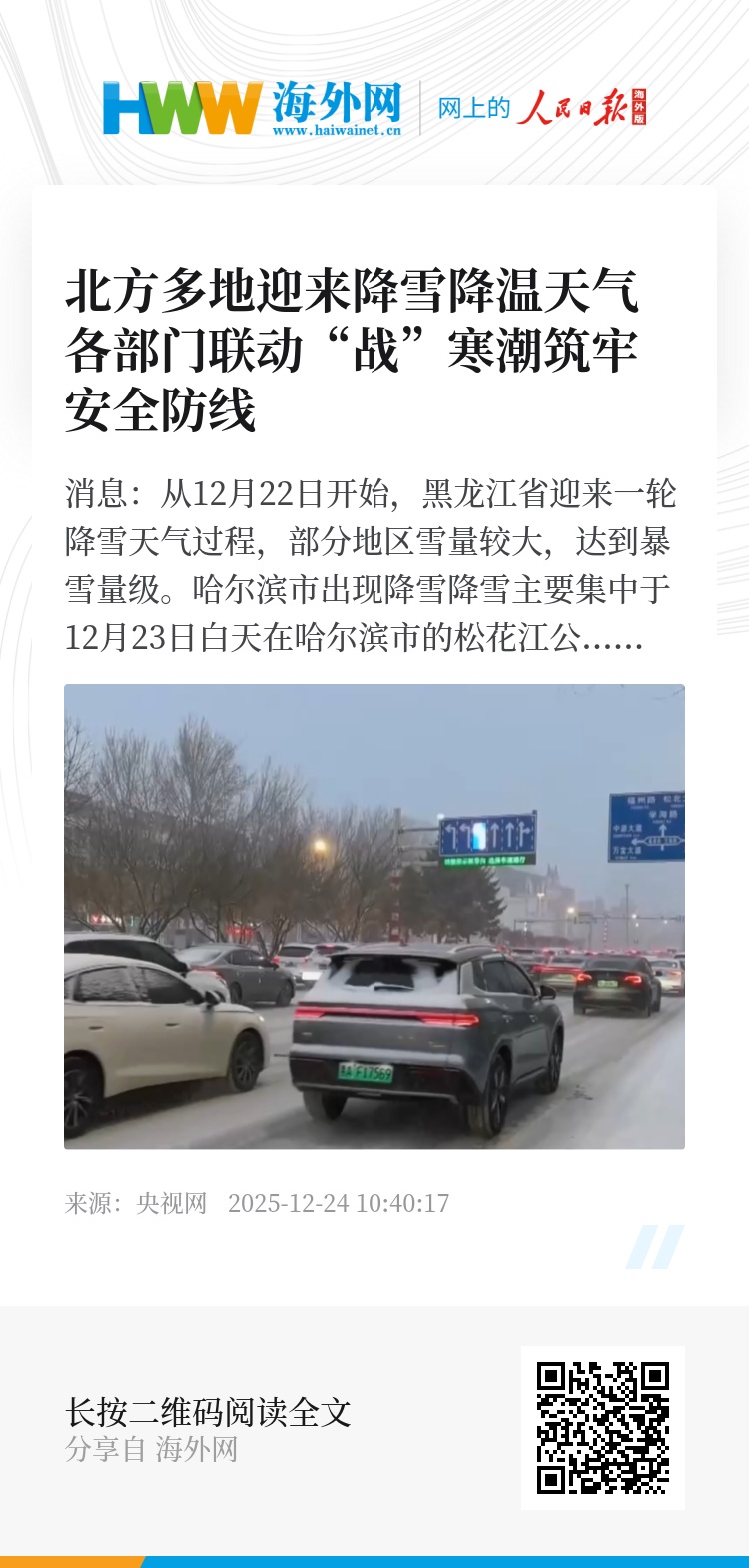 12月23日,吉林省迎来降雪天气,白城、松原、四平等地出现中到大雪。当地多部门联动积极应对降雪天气。