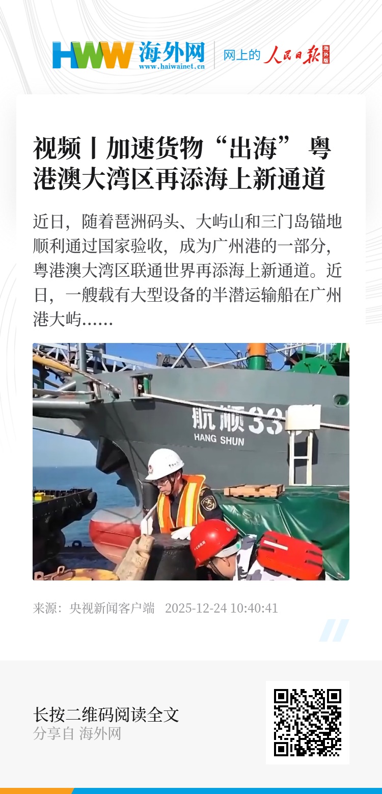 近日,随着琶洲码头、大屿山和三门岛锚地顺利通过国家验收,成为广州港的一部分,粤港澳大湾区联通世界再添海上新通道。