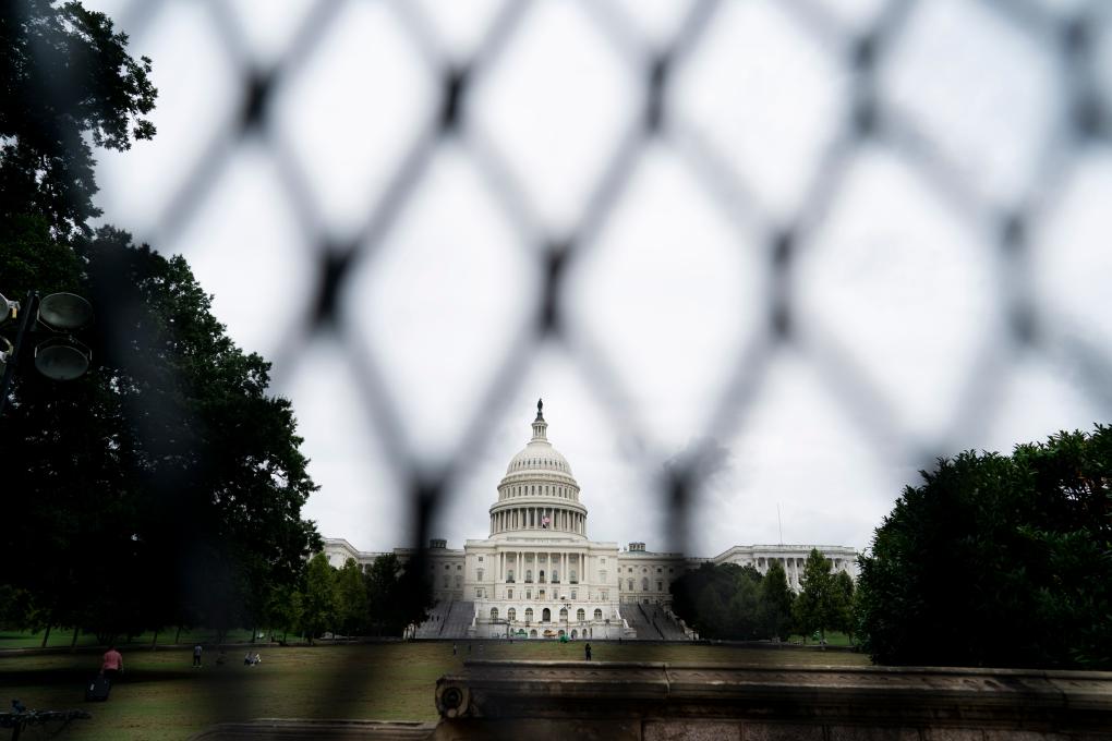 这是2021年9月17日在美国首都华盛顿透过隔离围栏拍摄的国会大厦。新华社记者刘杰摄