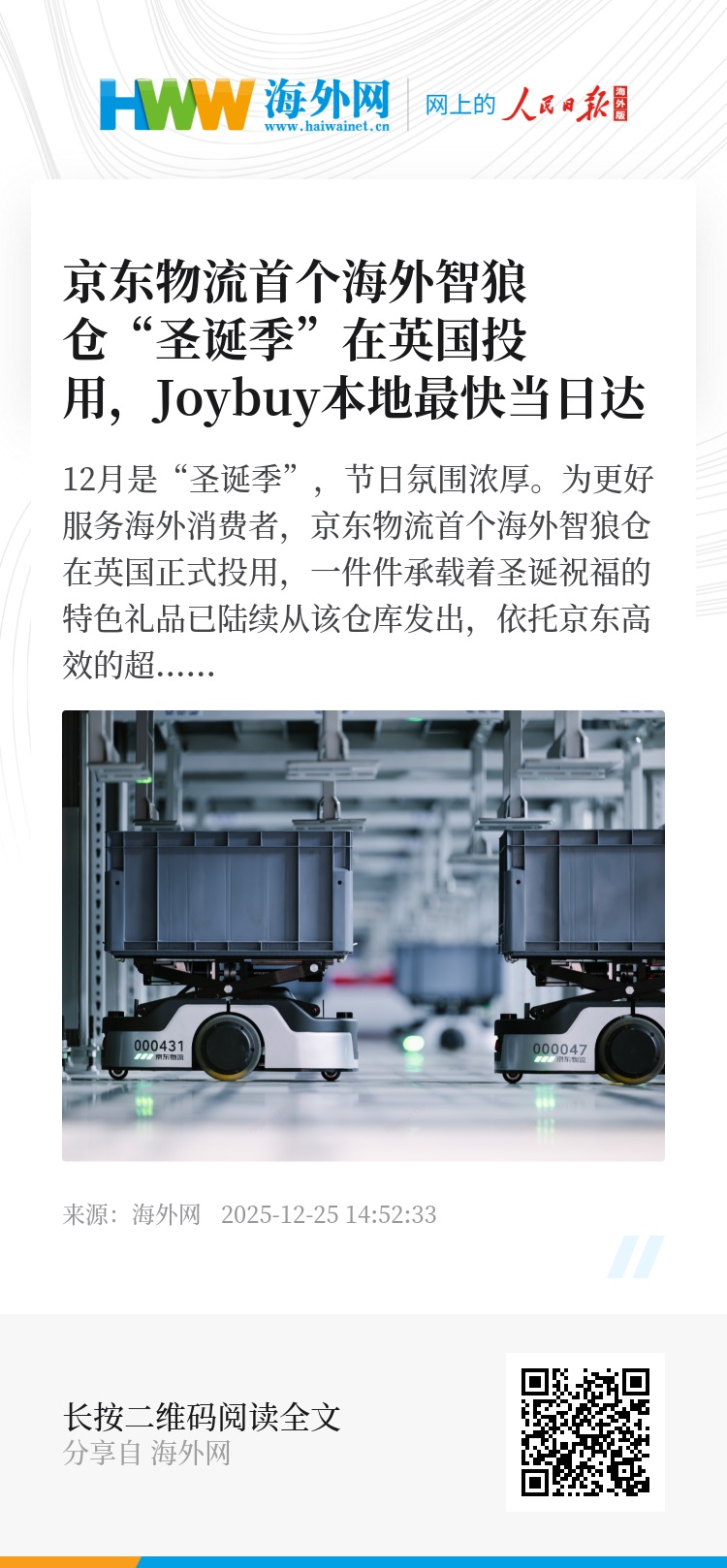 12月是“圣诞季”,节日氛围浓厚。为更好服务海外消费者,京东物流首个海外智狼仓在英国正式投用,一件件承载着圣诞祝福的特色礼品已陆续从该仓库发出,依托京东高效的超级供应链,京东欧洲线上零售业务Joybuy最快当天即可送达英国消费者手中。