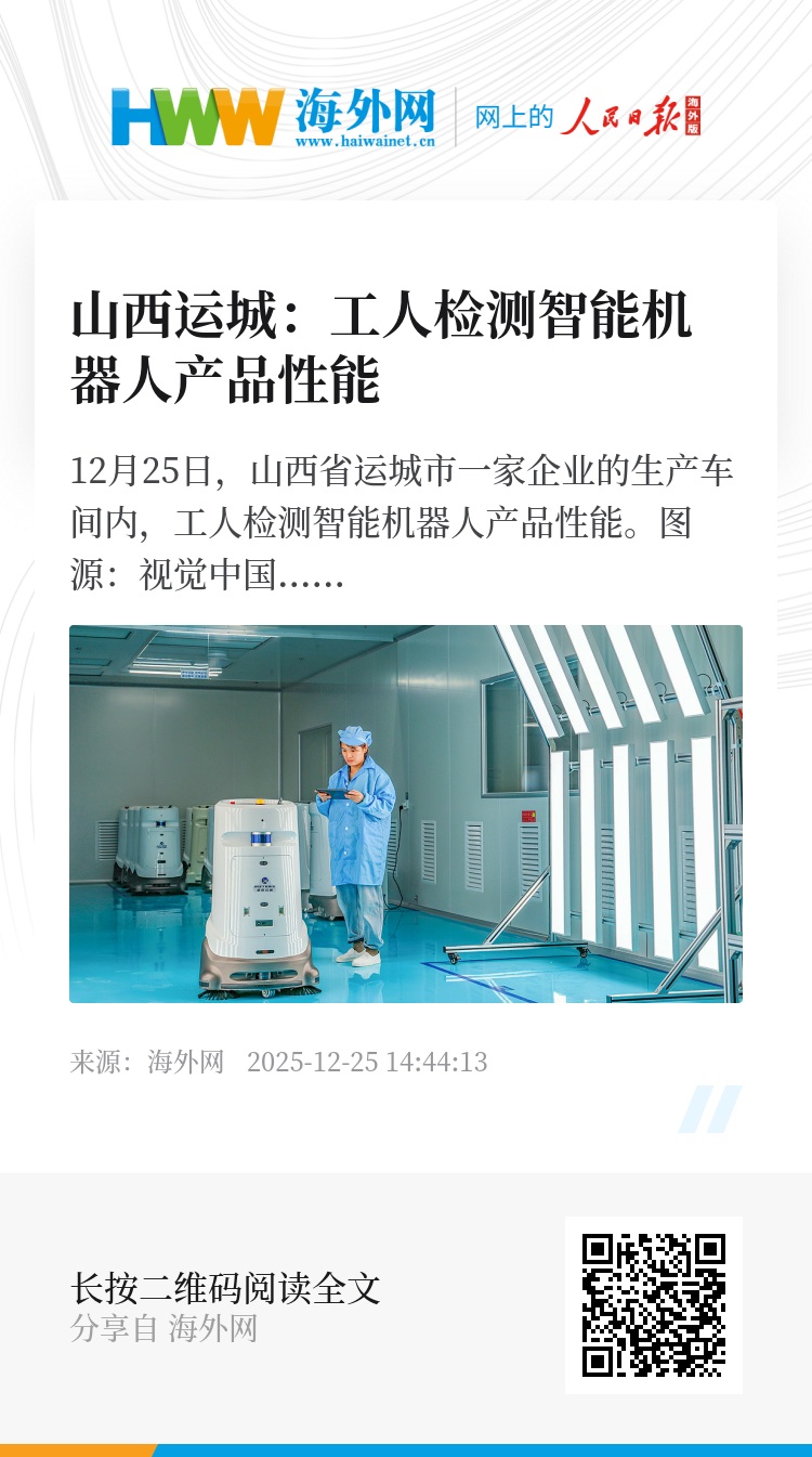 32918948,.山西运城:工人检测智能机器人产品性能,.2025-12-25 14:44:13,.204309,.陈亚楠、张振