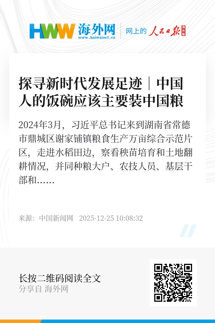 作为全国粮食主产区之一,2025年,湖南围绕打造更高水平“洞庭粮仓”发力,克服多种不利因素,通过科技赋能、设施完善等举措,促进粮食生产高产再高产。三湘大地的每一寸耕土、每一粒稻穗,都在书写着“中国人的饭碗装中国粮”的生动答卷。(徐志雄 张雪盈 龚顺)