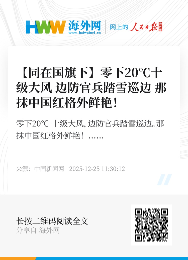 零下20℃ 十级大风,边防官兵踏雪巡边。那抹中国红格外鲜艳!