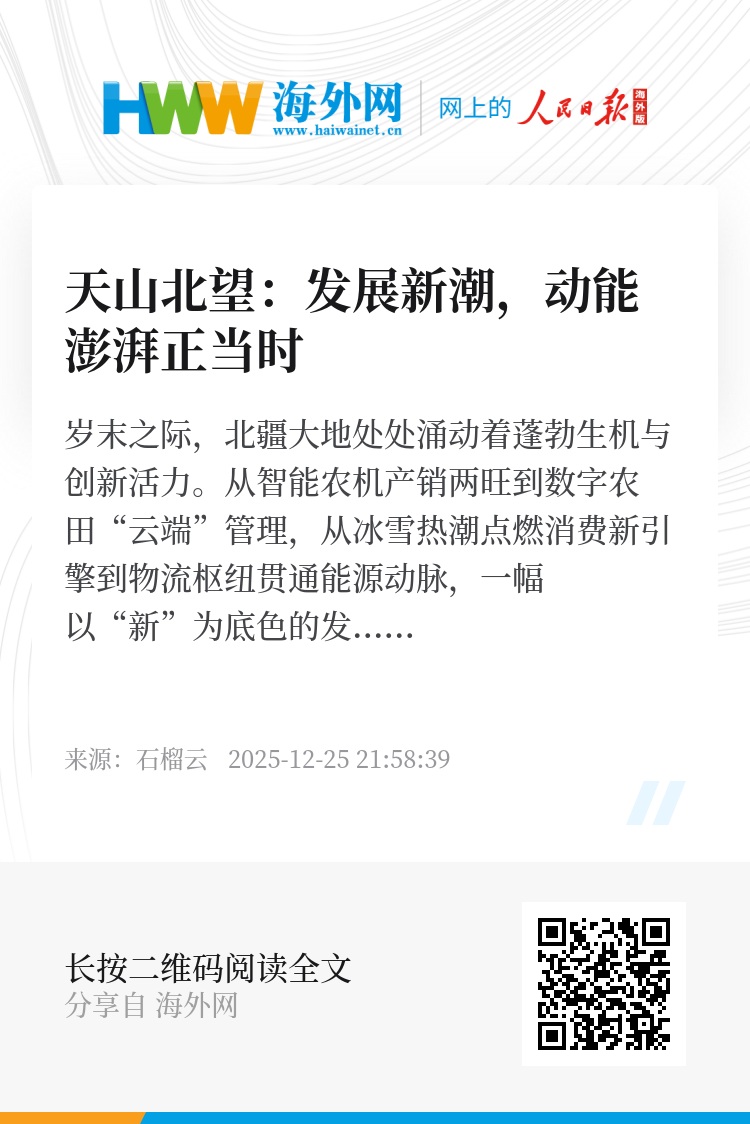 岁末之际,北疆大地处处涌动着蓬勃生机与创新活力。从智能农机产销两旺到数字农田“云端”管理,从冰雪热潮点燃消费新引擎到物流枢纽贯通能源动脉,一幅以“新”为底色的发展画卷正徐徐展开。本期北疆观察版年终盘点,聚焦四组生动实践,看新技术、新产业、新模式如何汇聚成新质生产力,为区域高质量发展注入强劲动能。