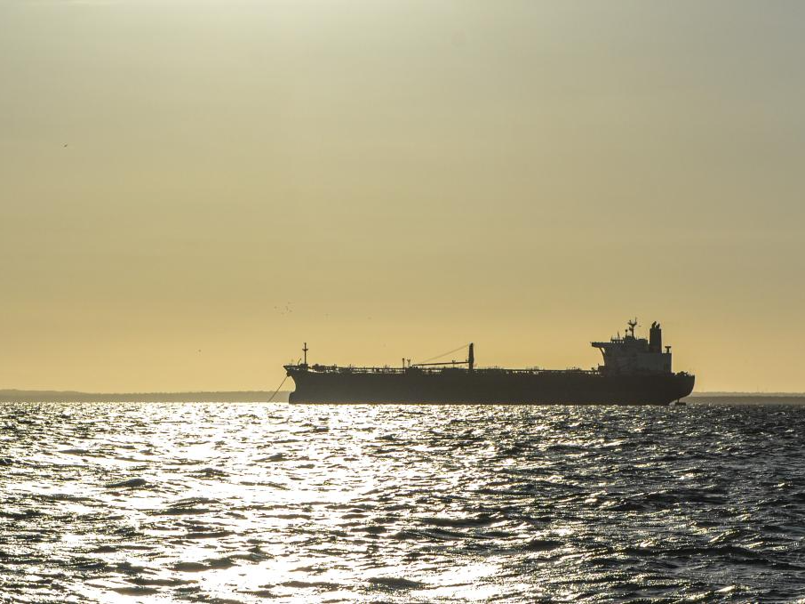 12月23日,一艘油轮停泊在委内瑞拉苏利亚州马拉开波湖上。新华社发